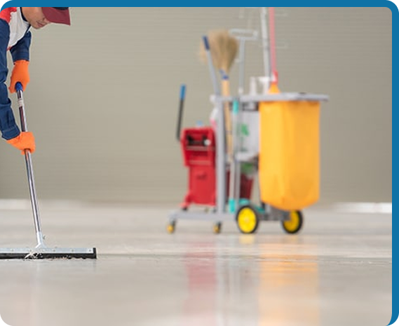 Machine scrubbing, sweeping, and polishing for safe, dust-free floors that withstand heavy foot and forklift traffic.